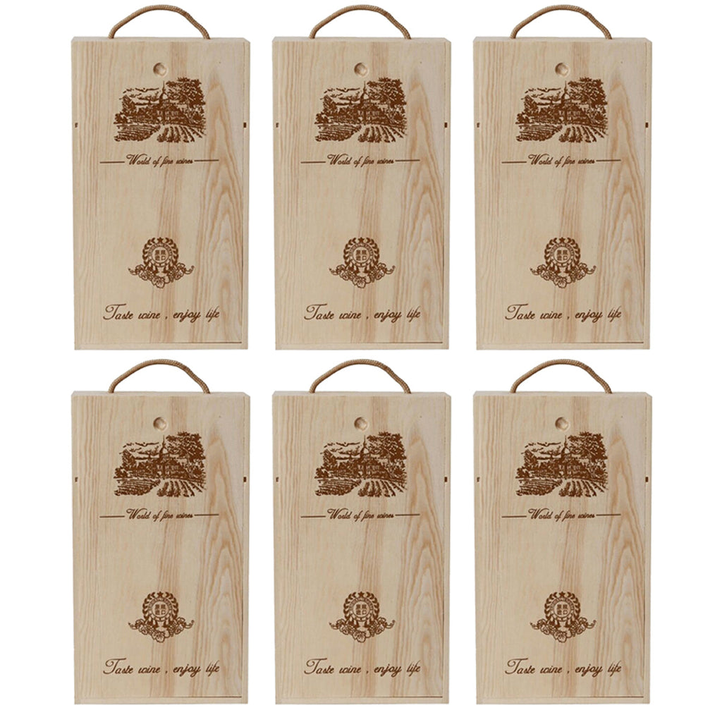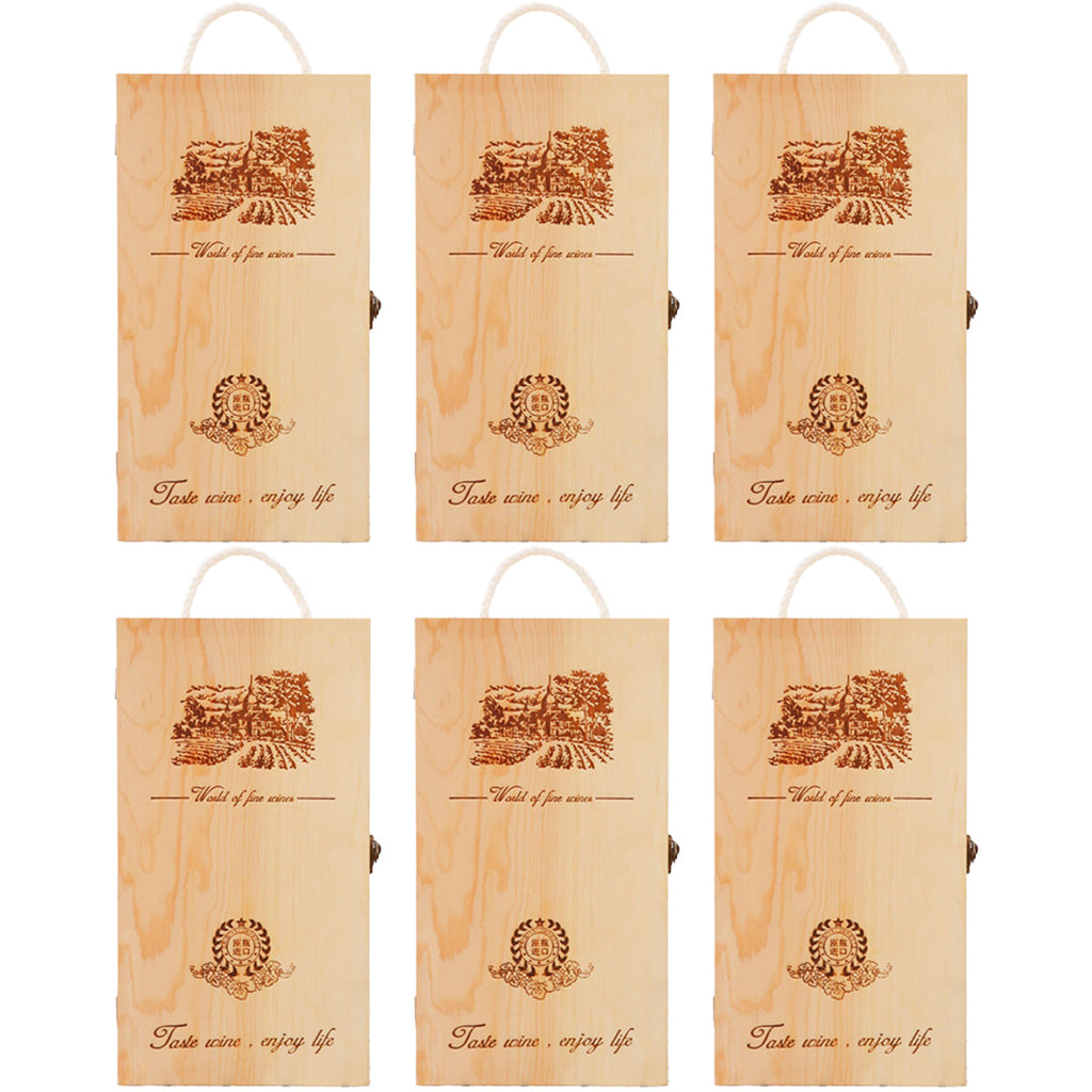 6pcs Red Wine Wooden Gift Box Packaging Storage Box for Wine Bottle Gifts - Single clamshell