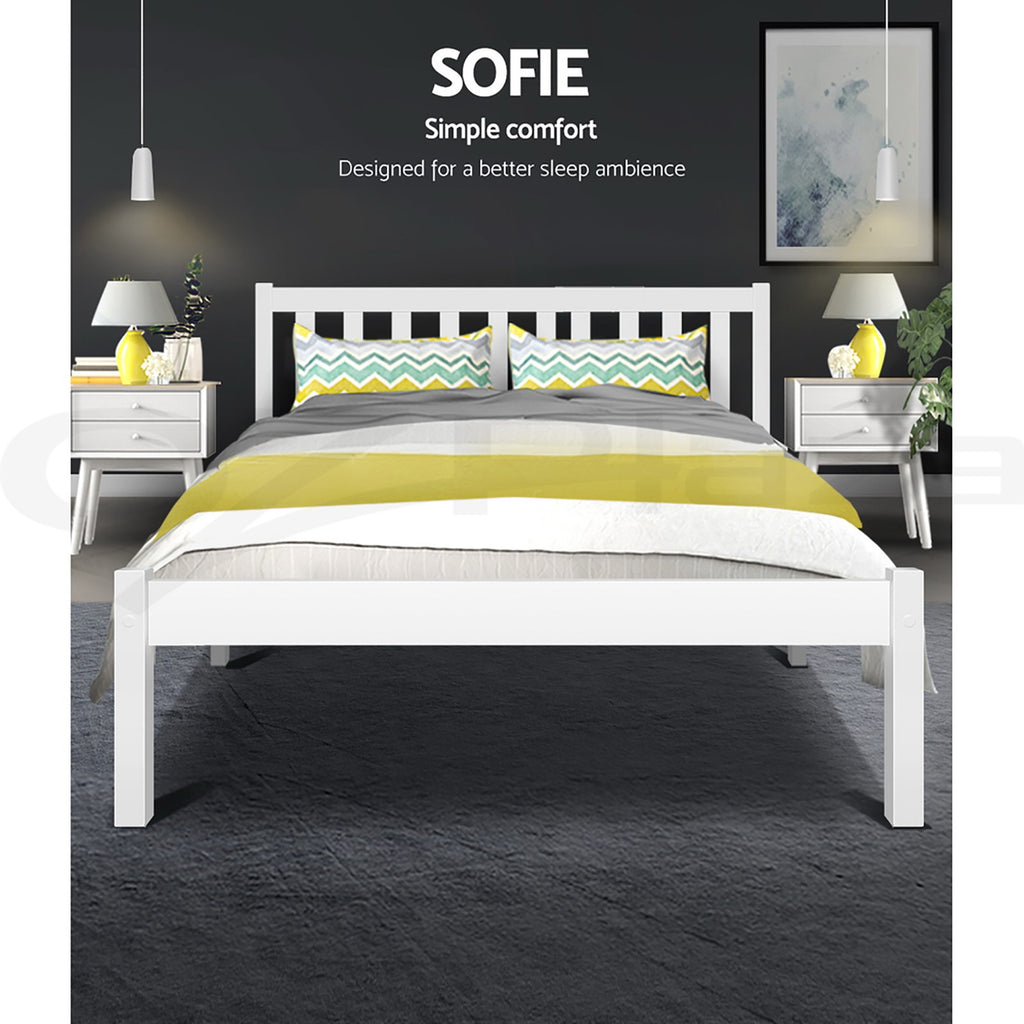 Made of solid pine wood, the Sofie Bed Frame is an all-round functional design that is compatible with most Australian sized mattresses and ideal for use by both young and old alike.