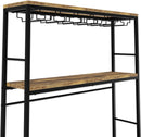 - STURDY & DURABLE CONSTRUCTION: Made from a solid combination of metal and wood, this wine holder provides long-lasting durability. The metal frame ensures excellent stability, while the wooden countertop offers a functional surface for storing wine glasses, corkscrews, or decorative items.