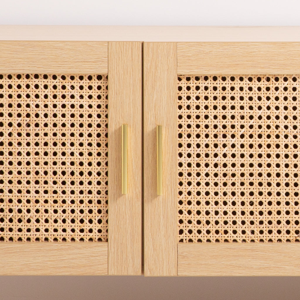 This entertainment unit is both classic and modern with its rattan details of texture on its cabinet doors that gives this entertainment unit a sleek boho-chic design.