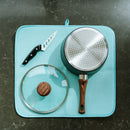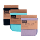 The Dish Drying Mat fixes the age old issue of how to air dry bulky or fragile items after hand washing without leaving water all over benchtops. The laminated design combines a thin layer foam between two layers or super absorbent Eco Cloths. The Eco Cloths are four times more absorbent than cotton tea towels. The centre foam works to cushion delicate dishes and glassware.