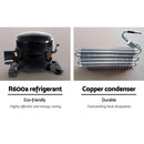 Freon-free refrigerant and enhanced heat dissipation enable low energy consumption
