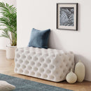 Make Boucle the sweetest touch at the foot of your bed or in your lounge. This ottoman is a multi-purpose piece that can be used as a bench, a tray, or a foot rest. The button tufted design features softened, rounded corners, and panelled upholstery around the base for understated elegance.
