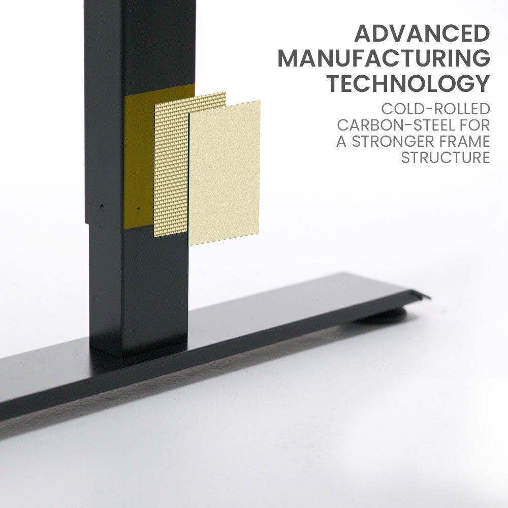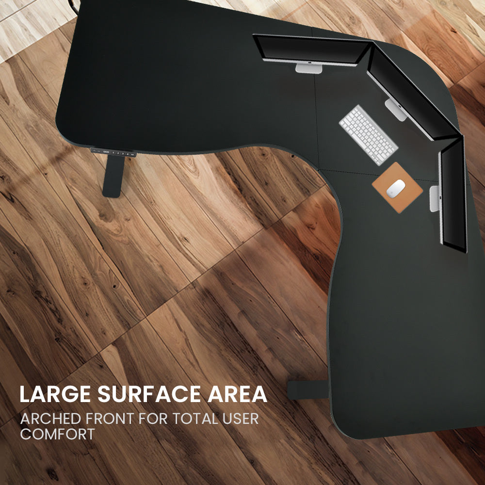 The FORTIA electric corner desk operates quickly, smoothly, and quietly with a triple motor system. It’s built to last, with a durable design that handles up to 120kg. The motors are discreetly housed within the frame for added safety and a sleek look.