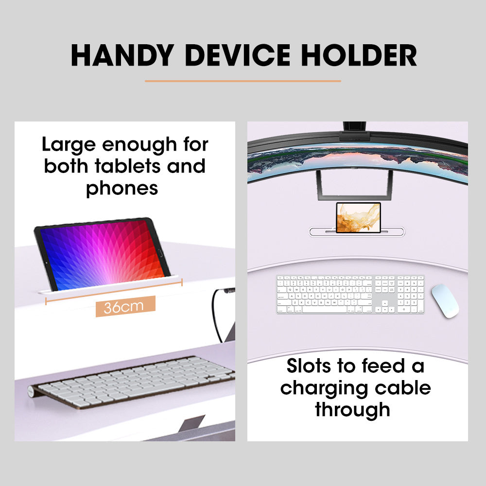 With its two tiered design and 17kg weight capacity, you are never short of space to work on when using the FORTIA Desktop Riser. The sturdy top surface can accommodate multiple setups such as a single monitor, laptop + monitor, as well as easily catering for dual monitors. The top surface also features a groove to hold a tablet or phone. The lower tier has plenty of space for a keyboard and mouse.