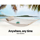 Relax and chill out with your favourite person in our Gardeon 2-person Hammock. Built of a polyester and cotton fabric with solid wooden rails for a well-balanced hang, our hammock has all the right vibes of days spent relaxing in your garden, at the beach or even in your bedroom. Such is the versatility of this cool-looking piece. And with a weight capacity of 180kg, you can rest assured it will hang tough too.