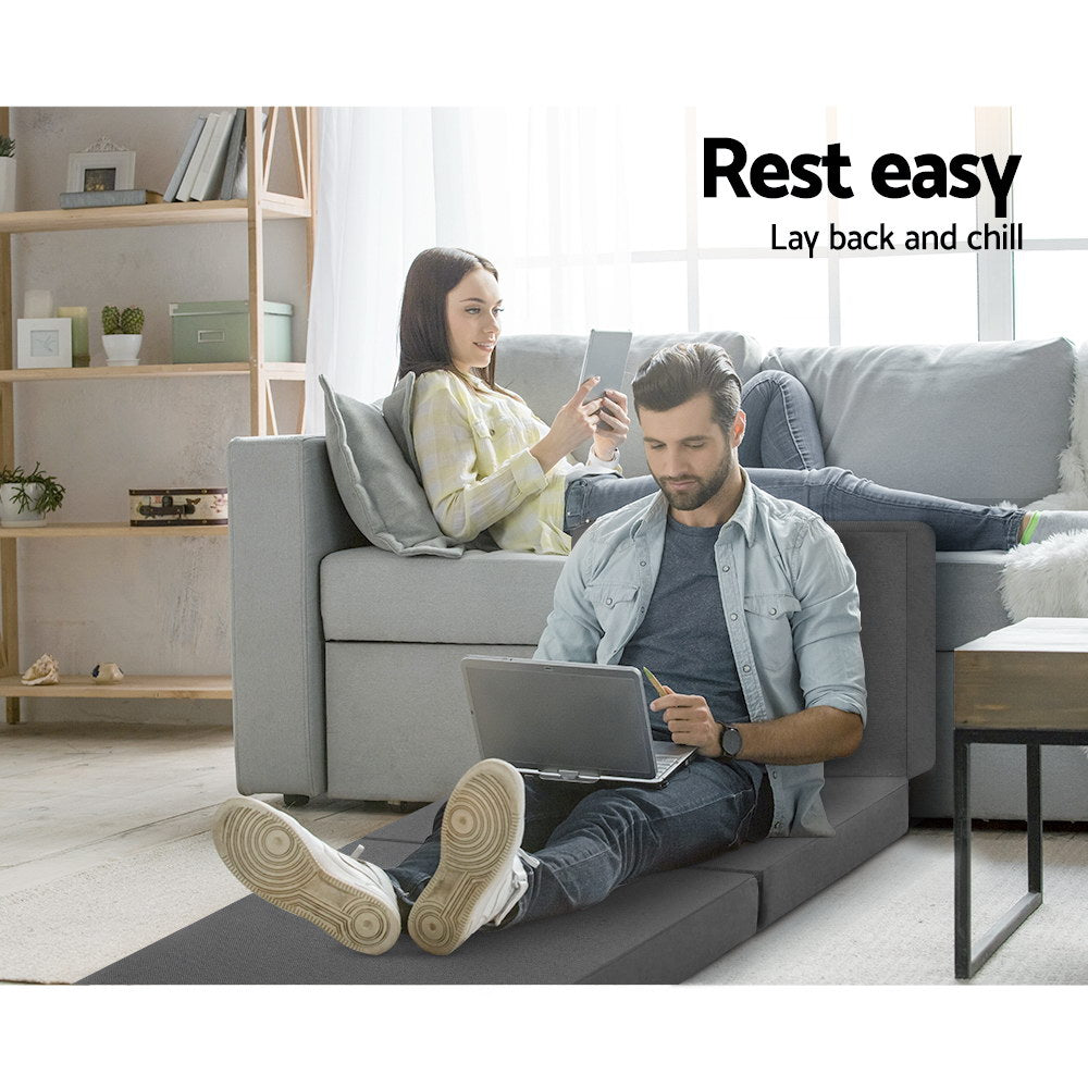 Our Giselle Bedding Folding Foam Mattress is just wonderful for a soothing rest or just chilling out. The soft linen fabric feels absolutely heavenly while the high-density foam provides adequate support for your body. It is foldable. That means it can be easily kept for storage and instantly open up to an instant bed for sleepovers. Better still, it can also be used as a single sofa to suit your leisurely use. The cover is removable and washable for total hygiene. The folding foam mattress is ideal for both adults and kids use.