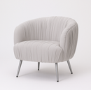 The kind of chair that stops the scroll and starts conversations. TheVespa Accent ChairinPearl Grey Velvetis all curves, couture detailing, and quiet luxury. With itselegant pleated upholstery, soft sheen, andsleek silver-finish metal legs, Vespa adds a refined, fashion-forward statement to any room.