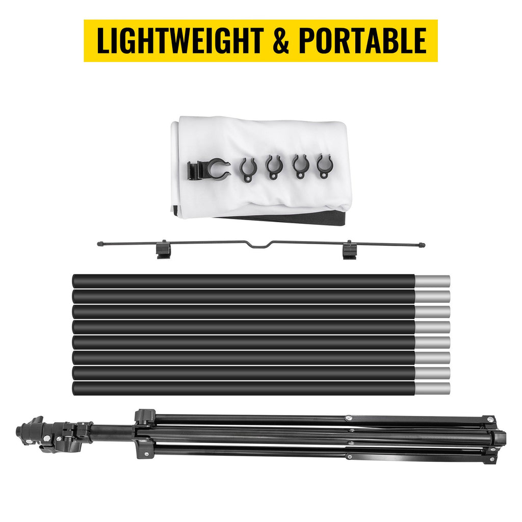 PORTABLE & EASY SETUP - Whether it is a conference or sudden movie planning at home, the projector screen and stand are quick and easy to set up. No tools, hardware, or special expertise are required. As a result, you can get a phenomenal viewing experience at any time anywhere.