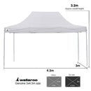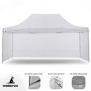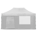 Ready when you are: Our strong triangulated frame system means this marquee comprises only 2 main parts. The frame is one complete assembly which expands to 3 x 4.5m and the roof is fitted over the frame as it unfolds, giving you instant cover from rain or sun! You can then set the height of the legs and fit the walls if required. When you're done you can just as easily fold the frame and roof away into the carry bag we provide, ready for transport or storage. The entire setup process will take 2 or 3 people just a few minutes!